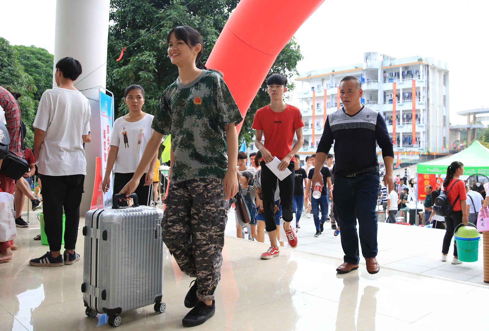 图为:广西交通技师学院志愿者热心服务新生及家长