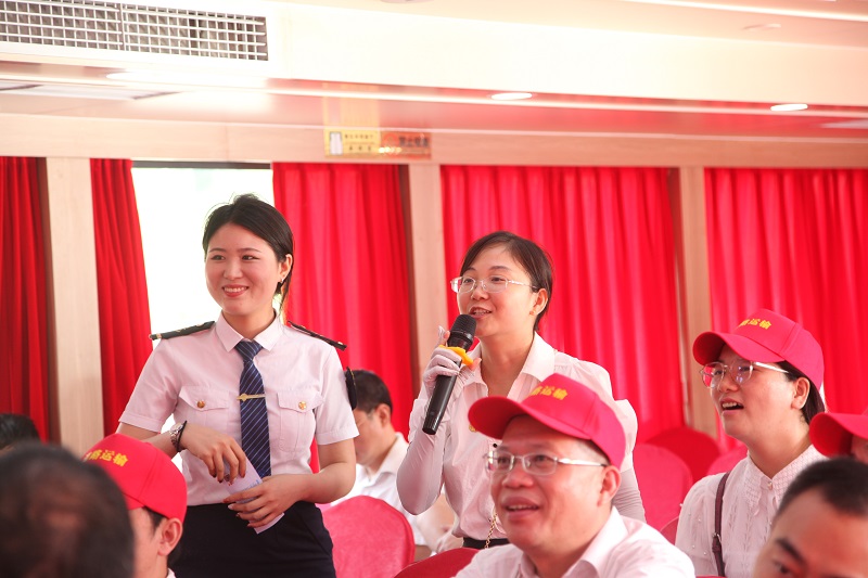 活动以重温入党誓词拉开序幕,党员同志面向鲜红的党旗,举起右手,紧握拳头,铿锵有力的宣誓声响彻船舱。 航程中,讲解员结合邕江沿岸的冬泳亭、邓颖超纪念馆、雷经天故居等红色历史景点以及南宁新时代蓬勃发展的生动场景,带领党员干部学习了南宁市革命建设和改革发展历史,深刻领会“学思想、强党性、重实践、建新功”的重要意义。中心党委委员、副主任朱华忠以《提高政治站位 认真履行职责 以高度的责任感抓好道路安全》为题,为党员干部讲授了一堂别开生面的党课。 “阅享新时代”主题图书阅读、“党史知识大家答”“红色经典影视剧配音”“红色歌曲大家唱”等生动有趣的互动环节,将活动气氛推向高潮。