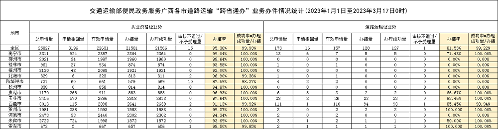 2023年1月1日至2023年3月17日零时交通运输部便民服务广西各市道路运输驾驶员“跨省...