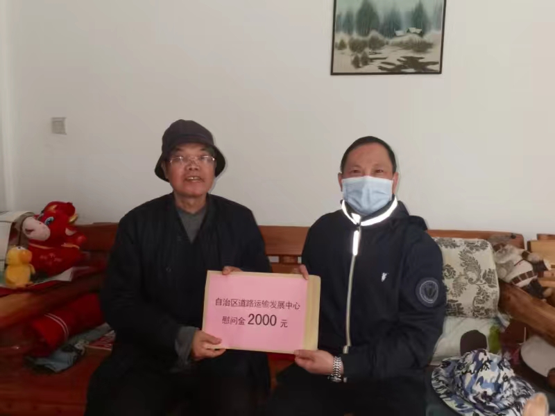 自治区道路运输发展中心主任张小健(右)走访慰问退休干部刘浩辉同志