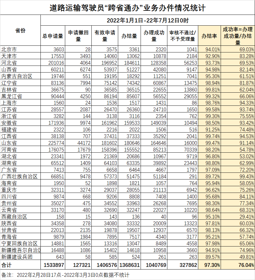 2022年1月1日至2022年7月11日零时交通运输部便民服务广西各市道路运输驾驶员“跨省...