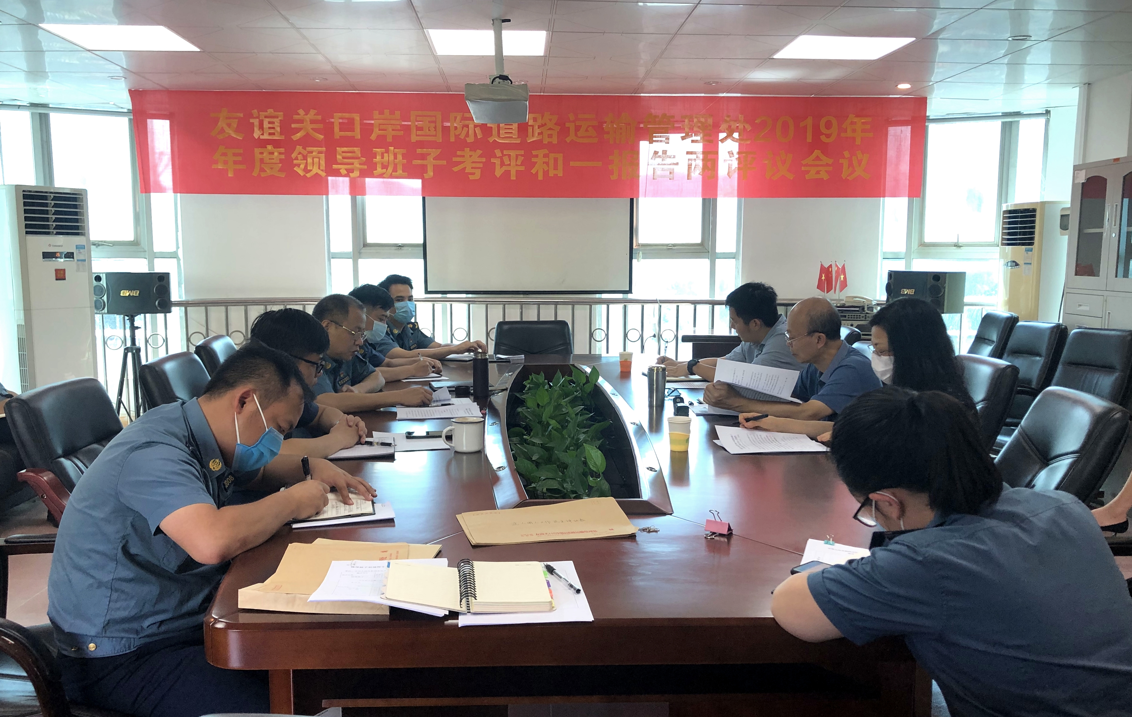 5月21日上午,友谊关国际道路运输管理处召开2019年度领导班子考评和“一报告两评议”工作会议。会议由党支部书记朱华忠主持,自治区道路运输发展中心党委书记罗华一行到会指导。