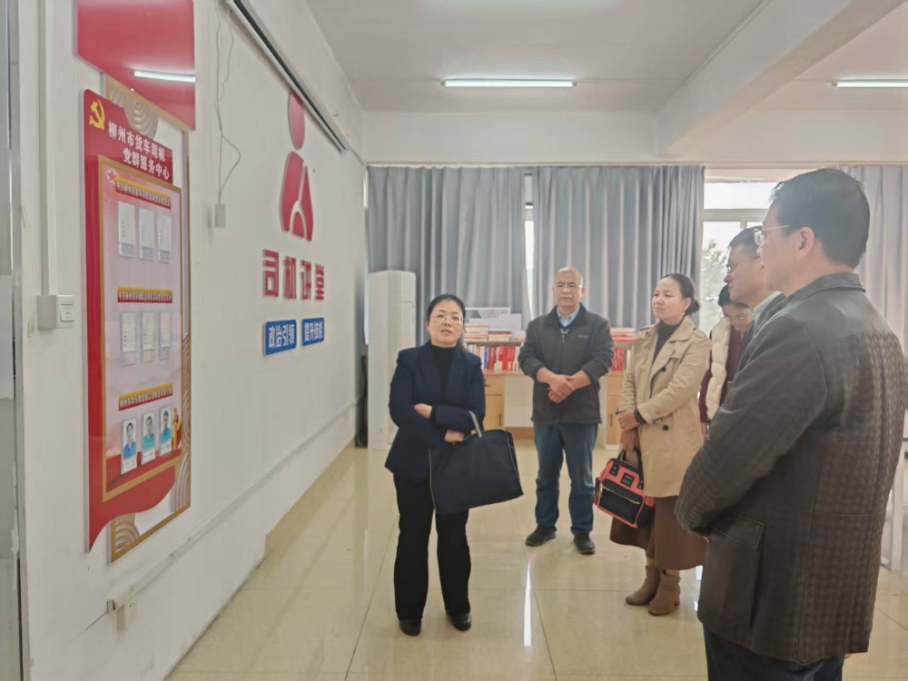 (图为指导组前往柳州市货车司机党群服务中心开展现场调研)