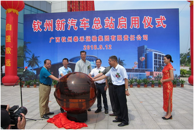 2018年9月12日上午,钦州新汽车总站启用仪式在钦州隆重举行,钦州市人大常委会黄源扬副主任,自治区道路运输管理局张小健局长,钦州市人民政府黄立和副秘书长,钦州市交通运输局梁振礼副局长、裴宇昌副局长,钦南区委常委、政法委书记邓善锋,钦州市有关部门,广西钦州泰禾运输集团有限责任公司以及区内主要道路客运企业负责人出席启用仪式。