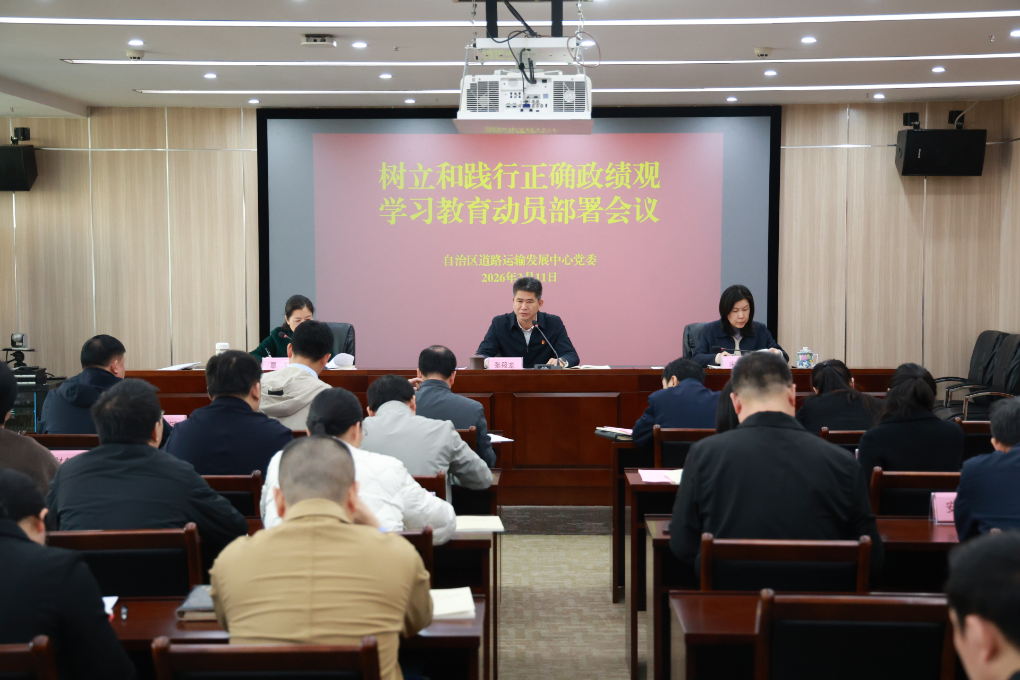 3月11日,自治区道路运输发展中心党委召开树立和践行正确政绩观学习教育动员部署会议,学习贯彻习近平总书记关于树立和践行正确政绩观学习教育的重要讲话和重要指示精神,全面落实党中央、自治区党委和自治区交通运输厅党组部署要求,部署道路运输行业树立和践行正确政绩观学习教育工作。自治区道路运输发展中心党委书记、主任张筱龙出席会议并作动员部署讲话,中心党委委员、纪委书记覃莹主持会议。中心领导班子成员和全体党员干部参加会议。
